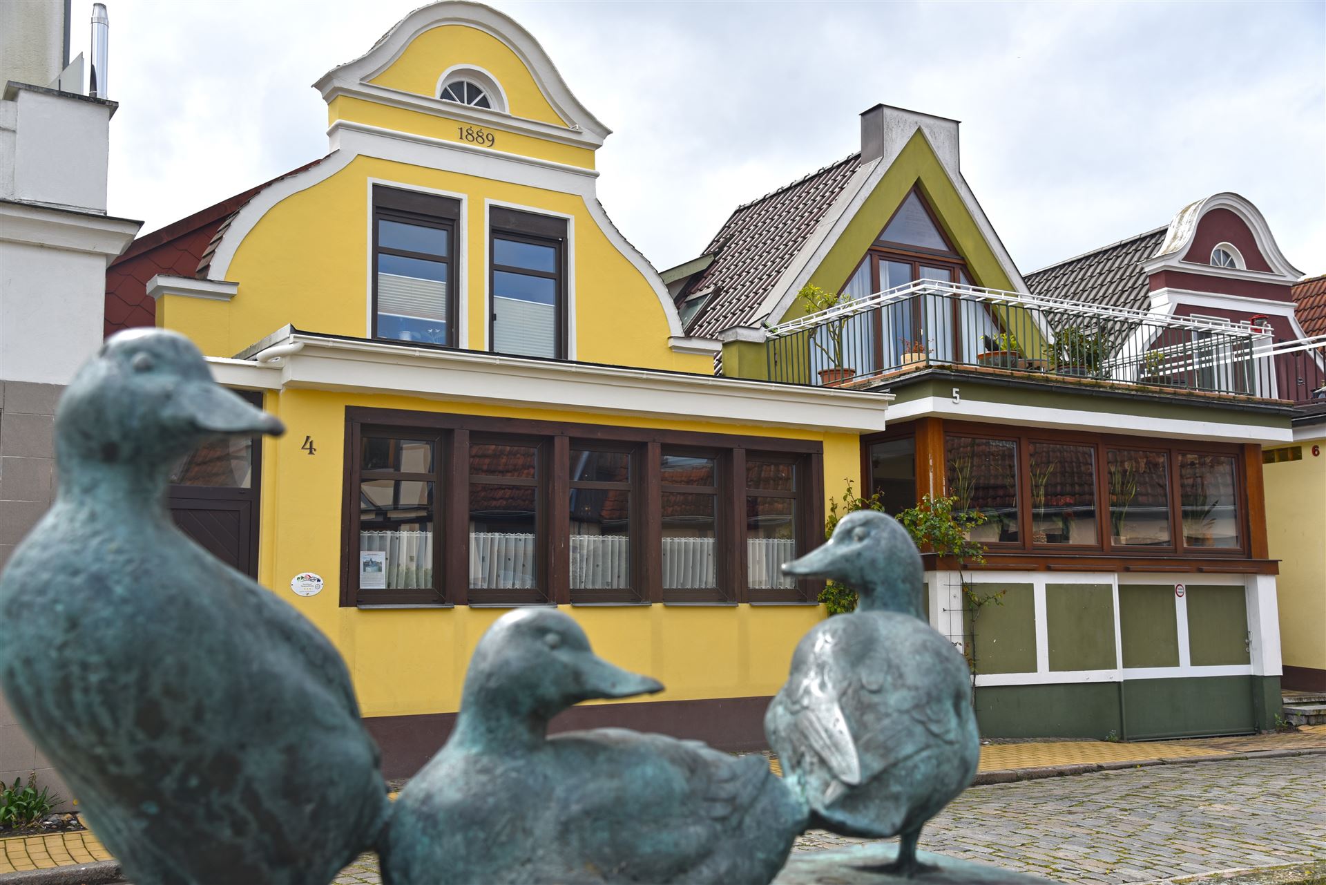 Die Wohnung hat einen einzelnen Zugang und liegt im hinteren Anbau des Kapitänshauses. Der ruhige Innenhof lädt in der Sitzgruppe zum Verweilen ein. Die Nähe zur Hauptmeile „Alter Strom“, Fischmarkt und Bahnhof, machen das Auto überflüssig.